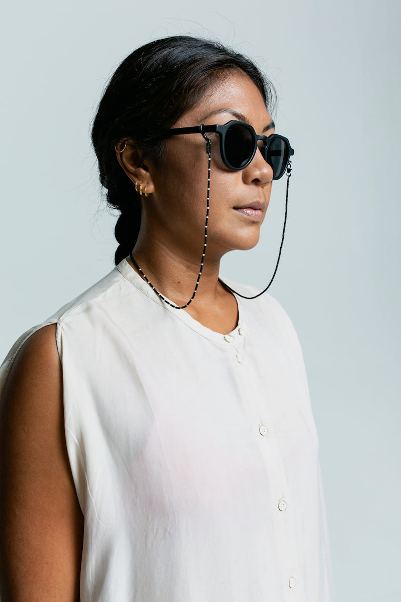 PURPLE RAIN glasses & mask chain are a mix of black and off-white beads to give it a little something. For both men and women.